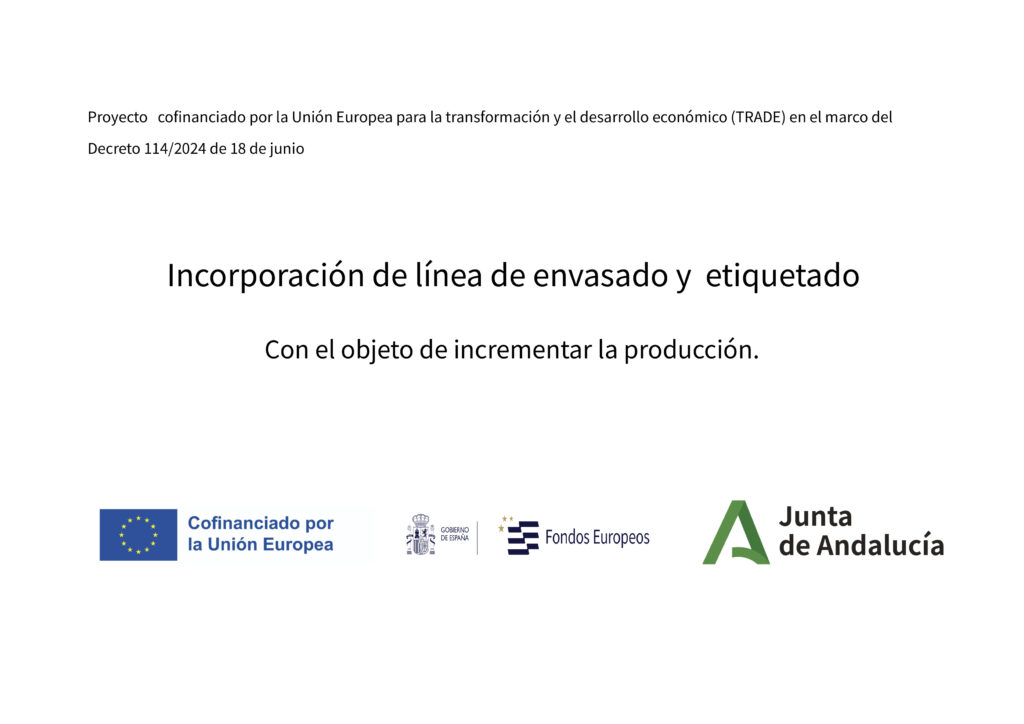 MCA ALGAS Y DERIVADOS SL ha recibido una ayuda de la Unión Europea con cargo al Programa de Andalucía FEDER 2021-2027 para la instalación de una línea de envasado y etiquetado en sus instalaciones.